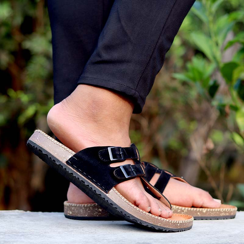 premium quality genuine Leather sandel two belt black